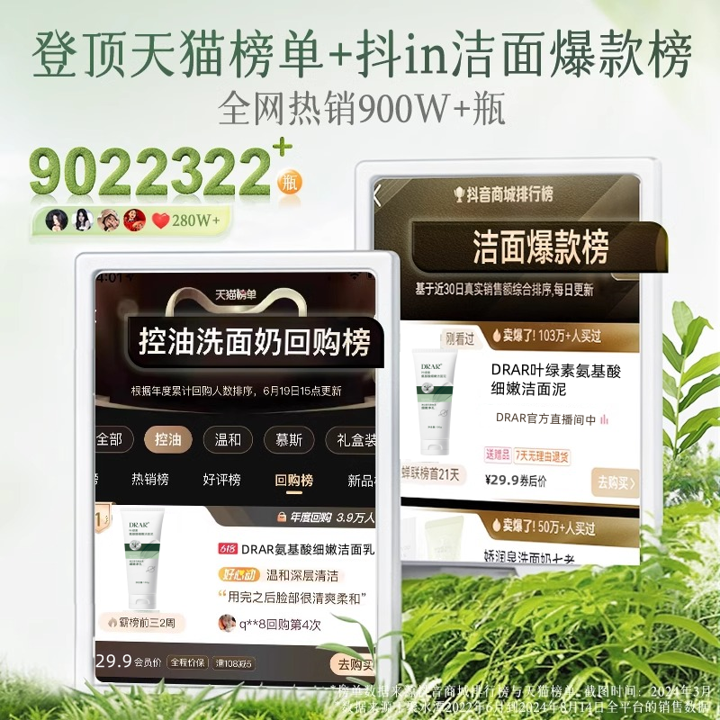DRAR叶绿素洁面乳洗面奶收毛孔