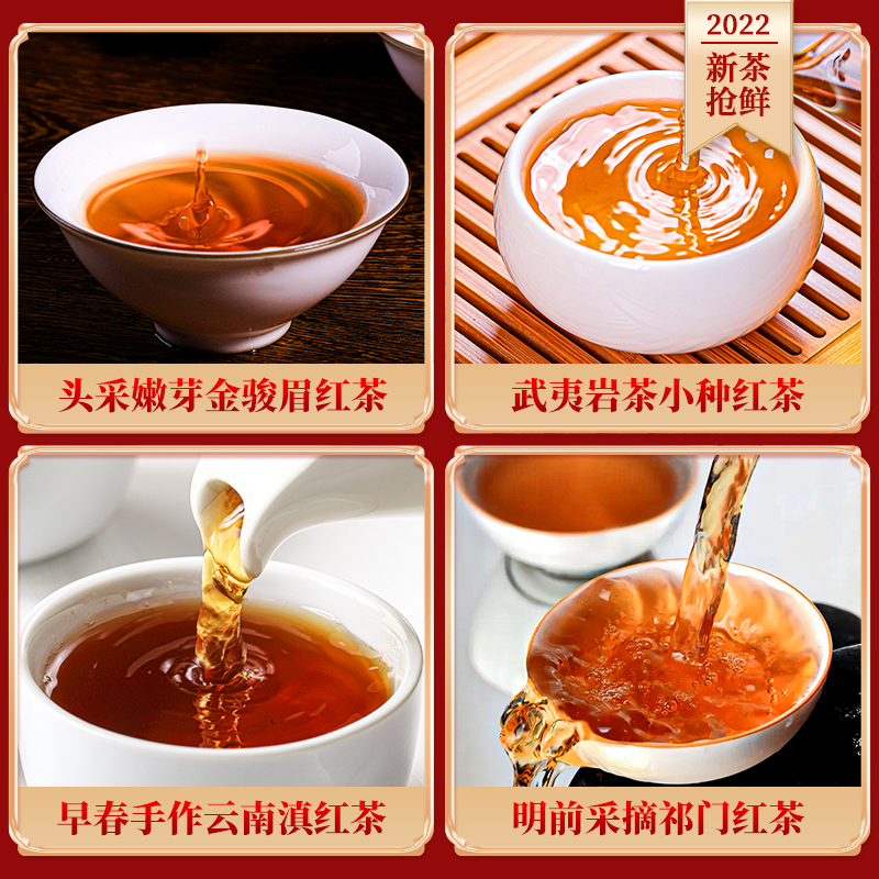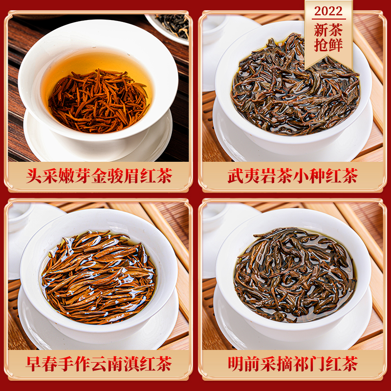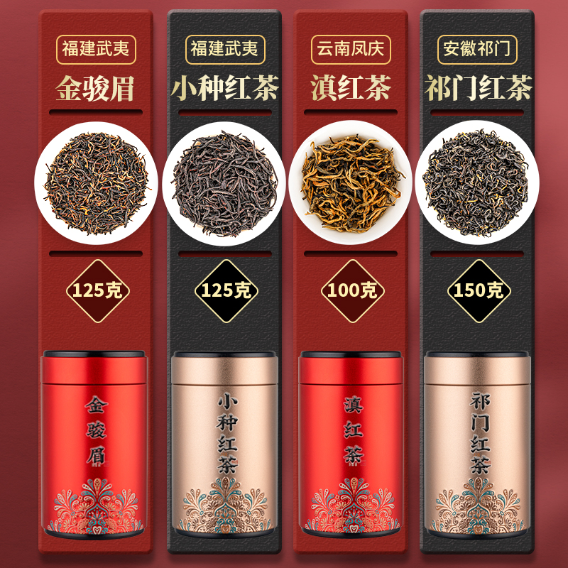 四大红茶2025新茶红茶金骏眉滇红高山小种祁门红茶叶组合送礼罐装