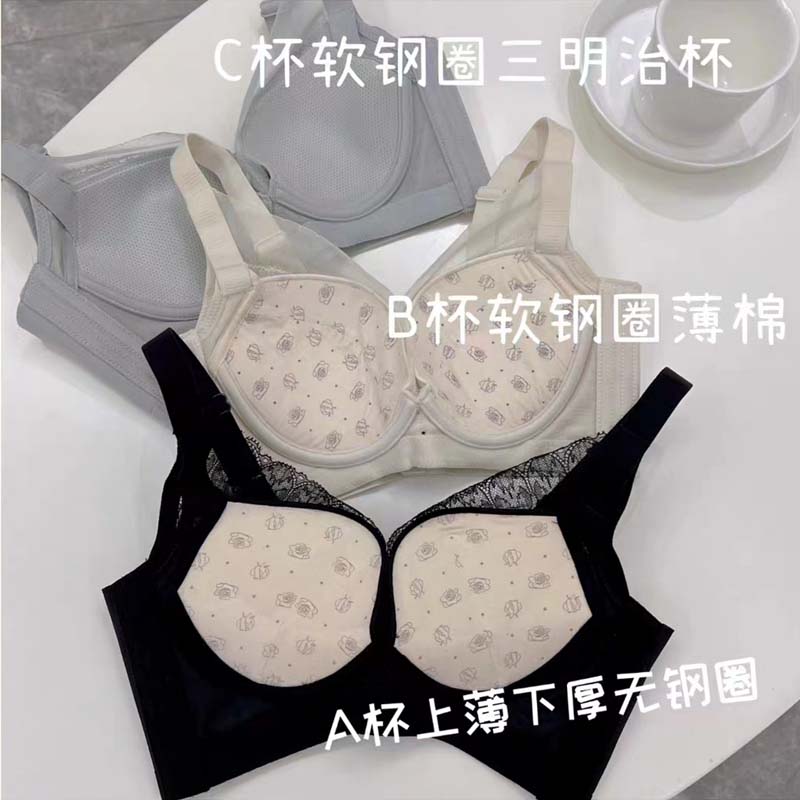 小胸聚拢无钢圈调整型内衣薄款文胸大胸显小软钢圈中薄胸罩收副乳