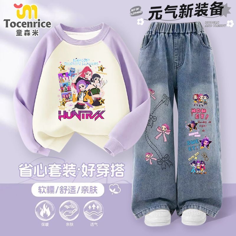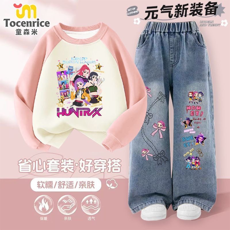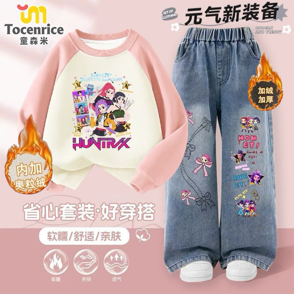 kpop demon hunters猎魔女团女童卫衣秋冬套装中大童加绒牛仔裤潮