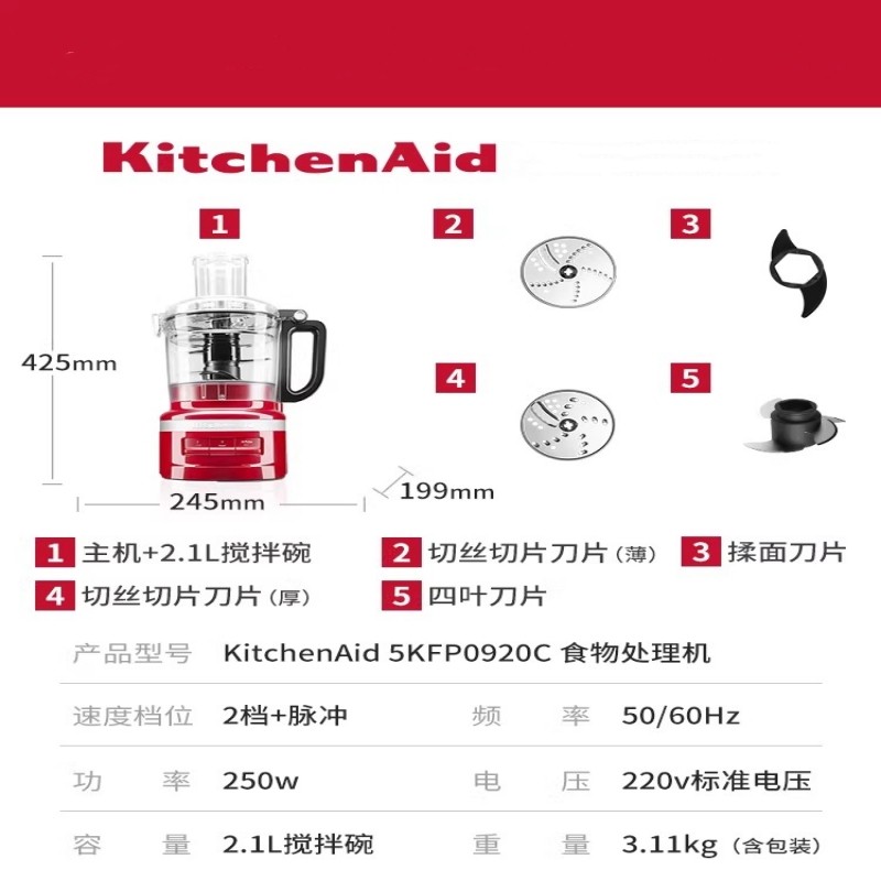 KitchenAid凯膳怡绞肉机5KFP0920CPA电动搅拌机打馅多功能料理机