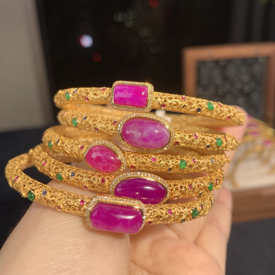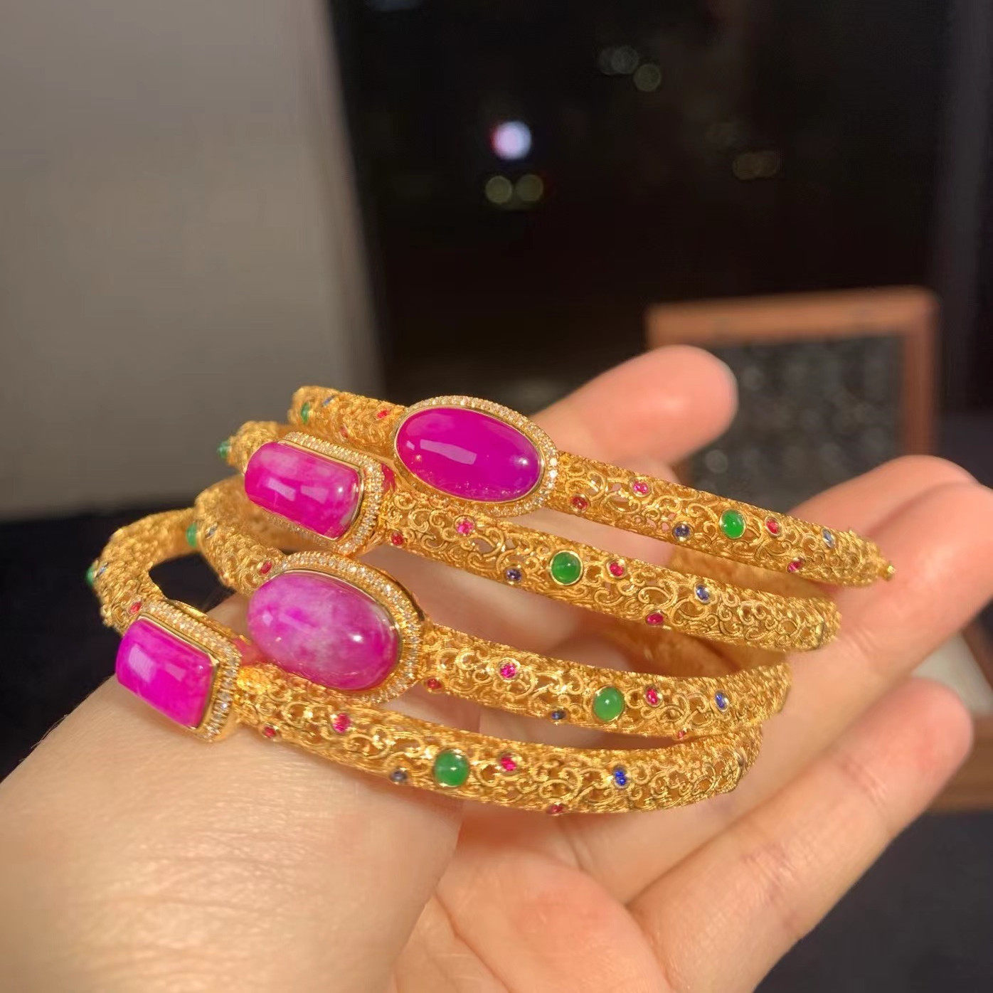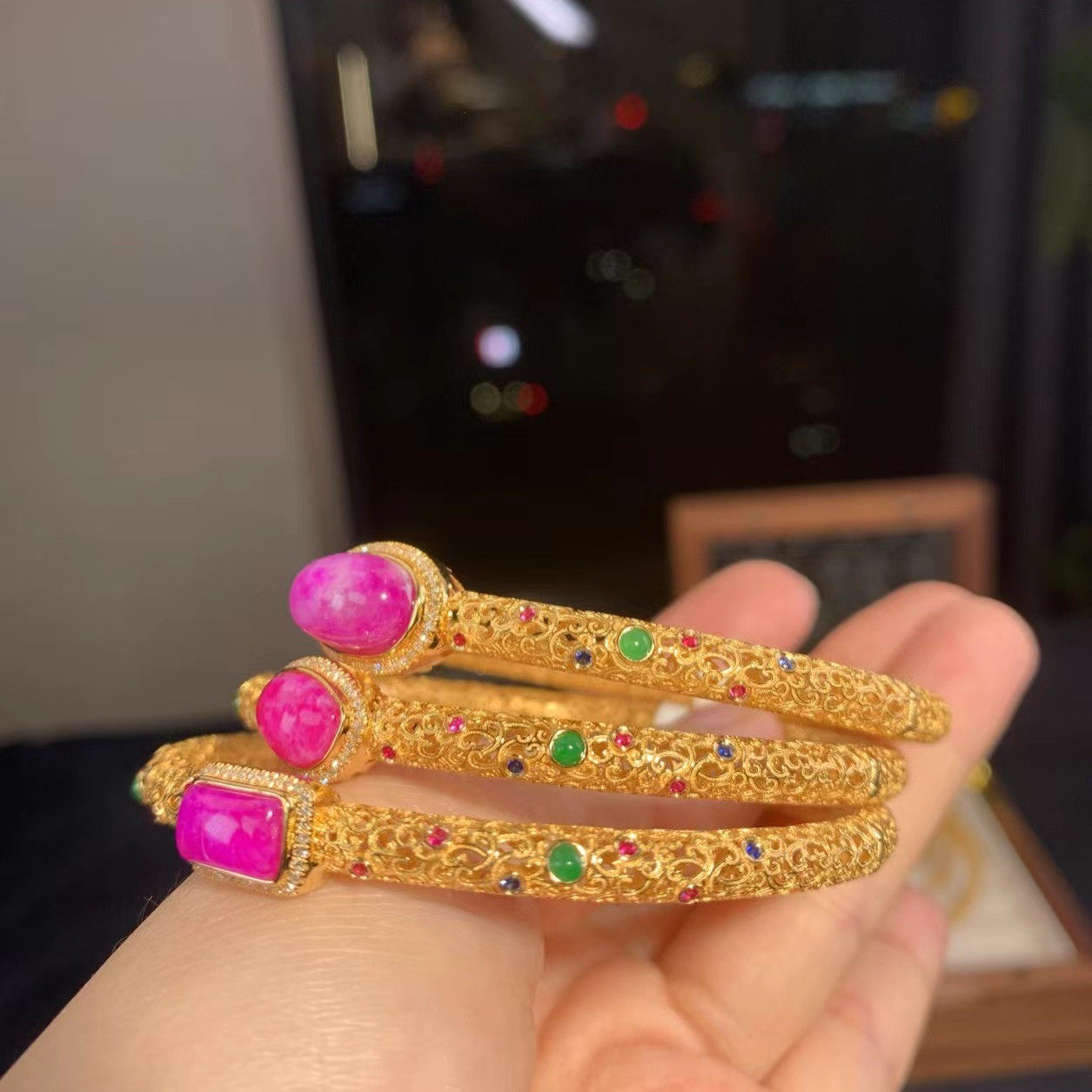 18k金舒俱来花丝手镯 桃红舒俱来 南非老矿料舒俱来手镯
