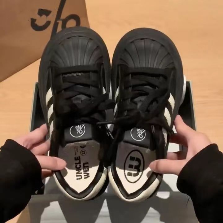 赵露思同款小众三条杠厚底板鞋女2025春季爆款贝壳头高颜值运动白