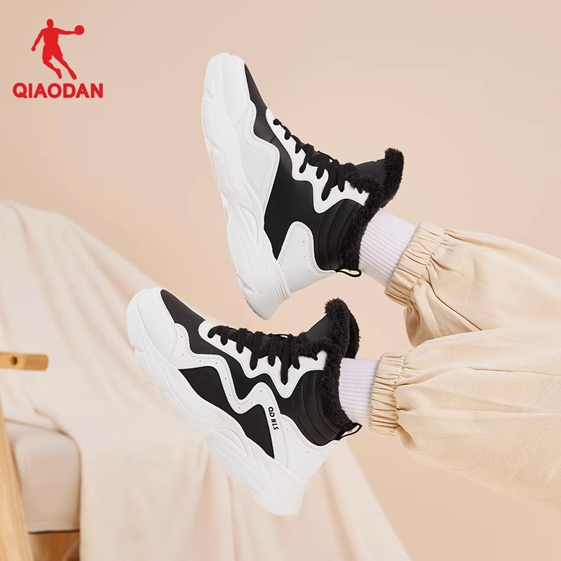 乔丹运动鞋女2023秋冬新款皮面加绒保暖棉鞋厚底增高休闲老爹鞋女