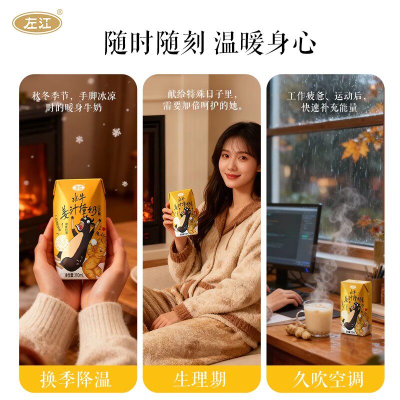 左江水牛姜汁撞奶暖冬新品暖胃营养美味红糖水牛奶学生营养早餐奶