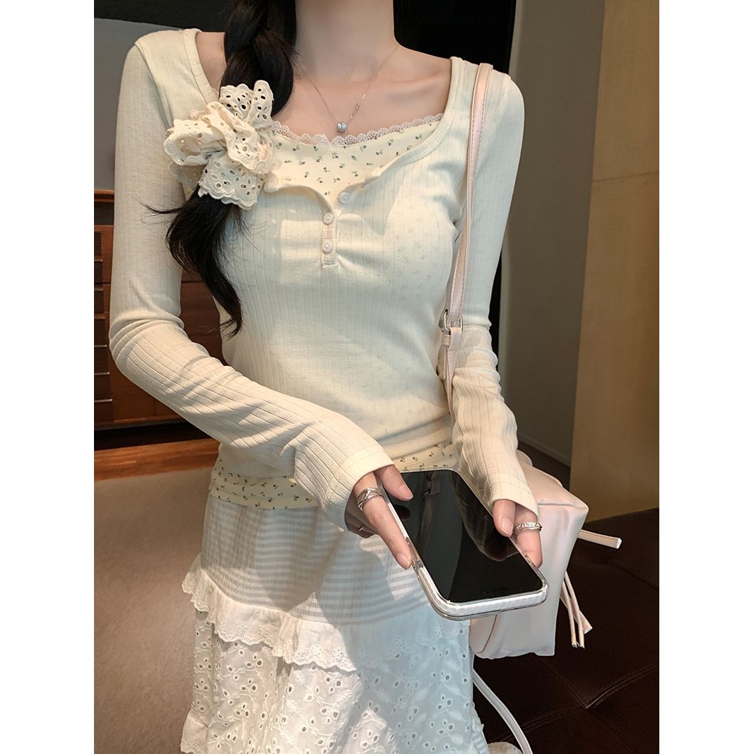 假两件长袖t恤女装设计感假两件2025春秋薄款修身打底衫圆领上衣