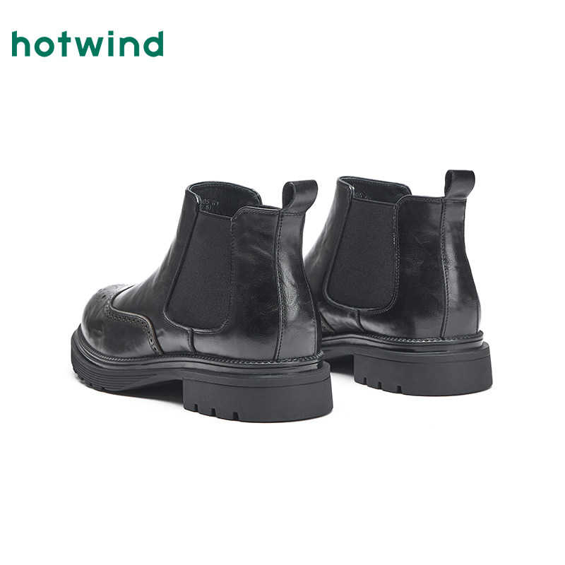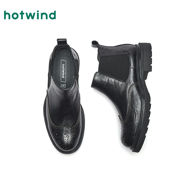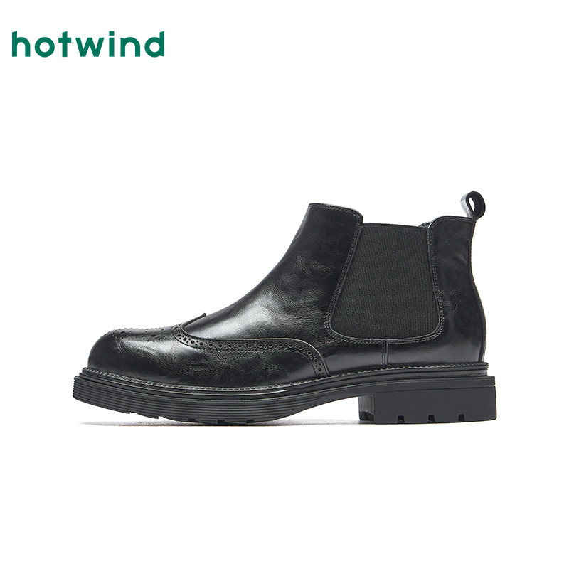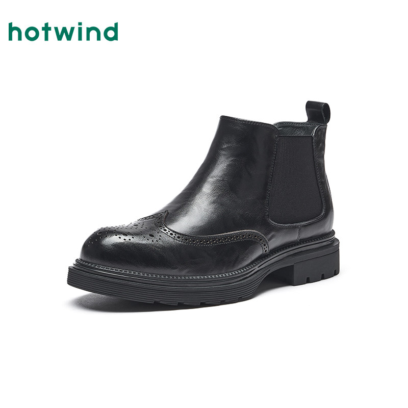 热风男鞋2025年冬季新款男士英伦风黑色切尔西靴百搭粗跟休闲短靴