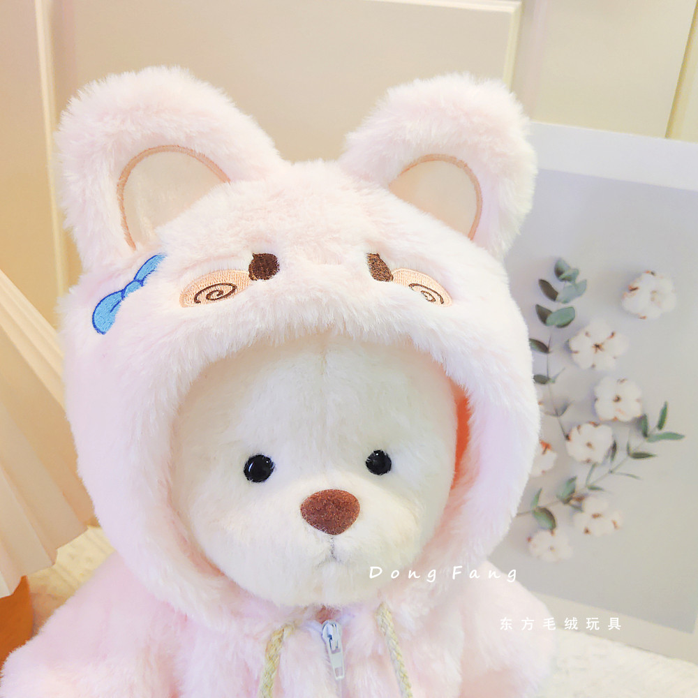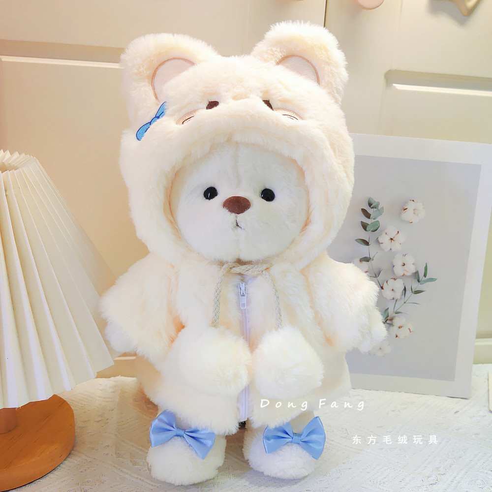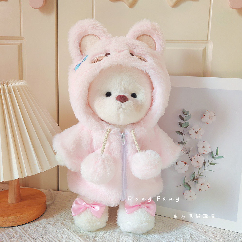 小熊公仔衣服30cm关节小熊玩偶娃衣替换装毛绒球球帽连体服大衣