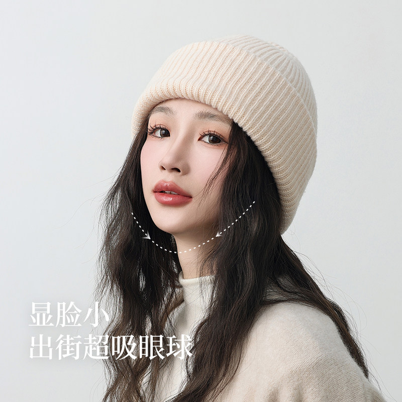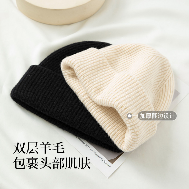 siggi 纯羊毛帽子女冬季双层保暖显脸小包头月子针织帽百搭毛线帽