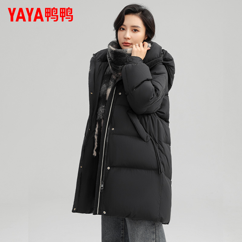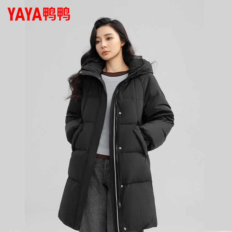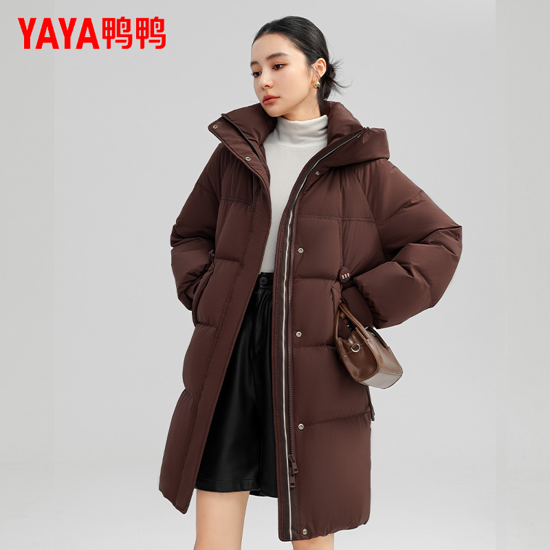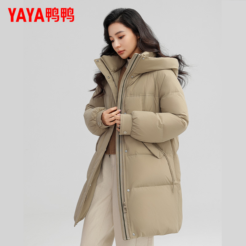 鸭鸭羽绒服女士2025冬季中长款新款休闲连帽保暖冬装韩版羽绒外套