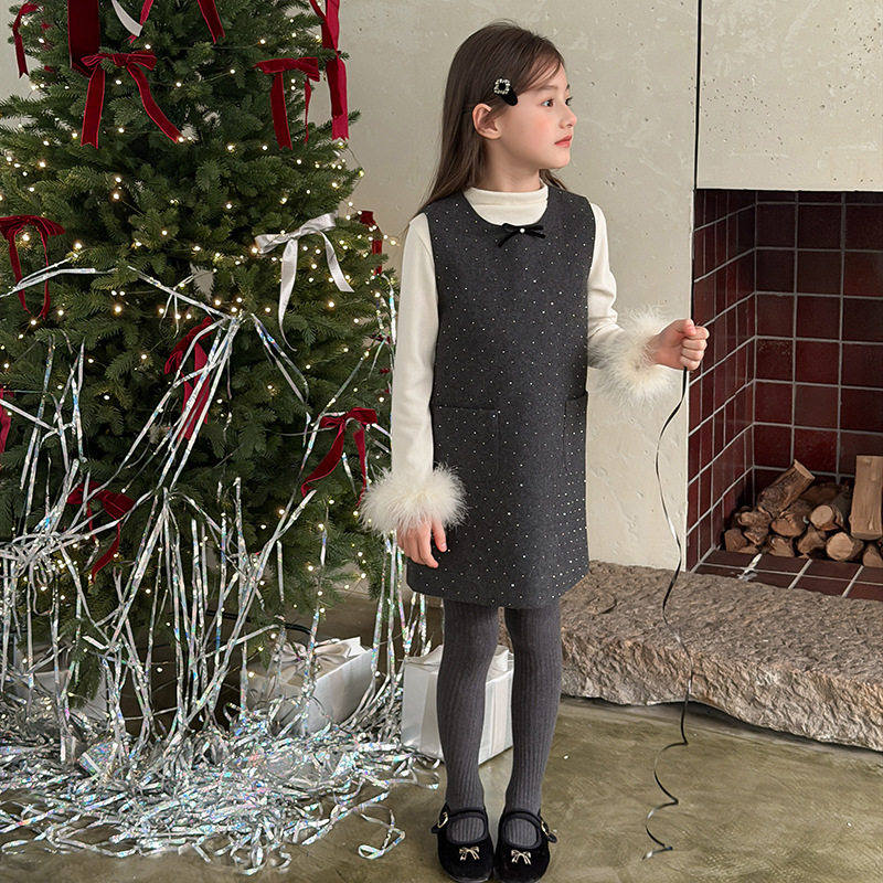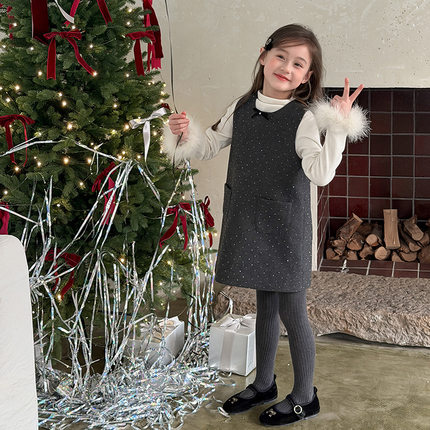 谁能拒绝自带复古滤镜的连衣裙!A 字版型毛呢烫钻波点背心裙