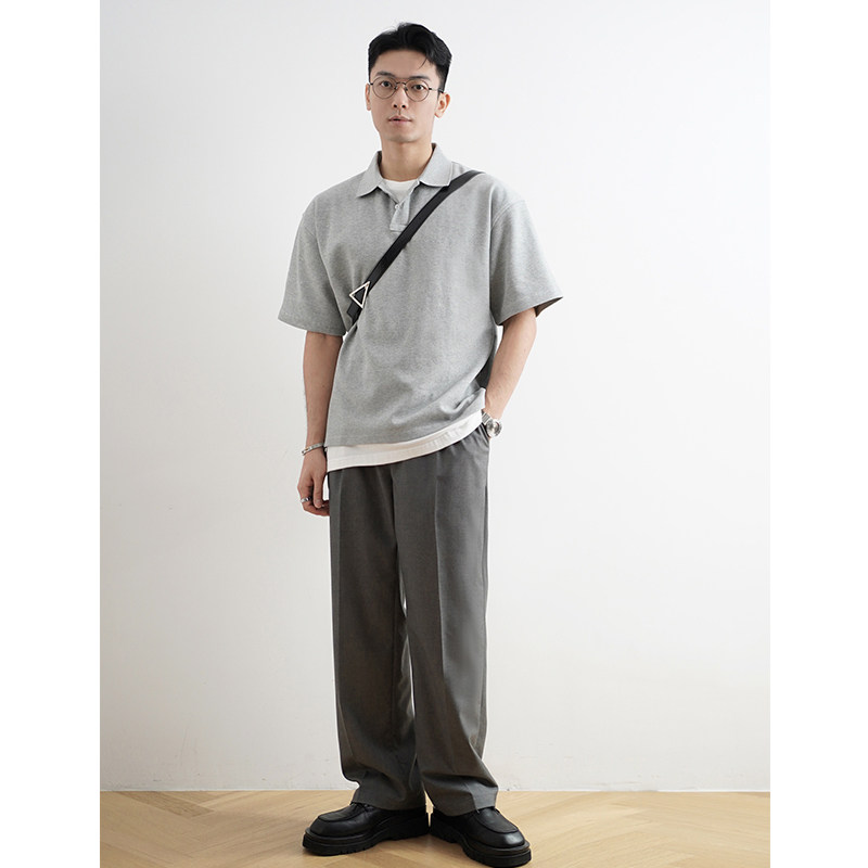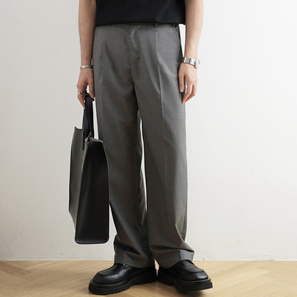 SHIJOIN原创 高级灰垂感西裤宽松休闲单褶显腿长百搭长裤200249A