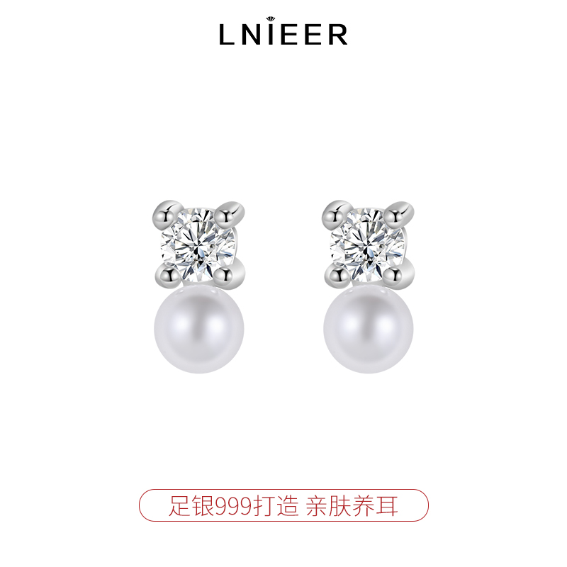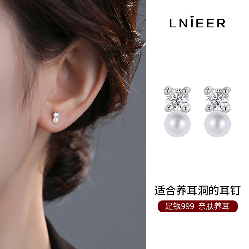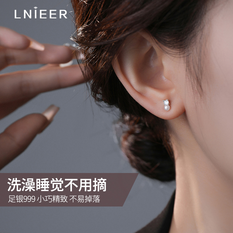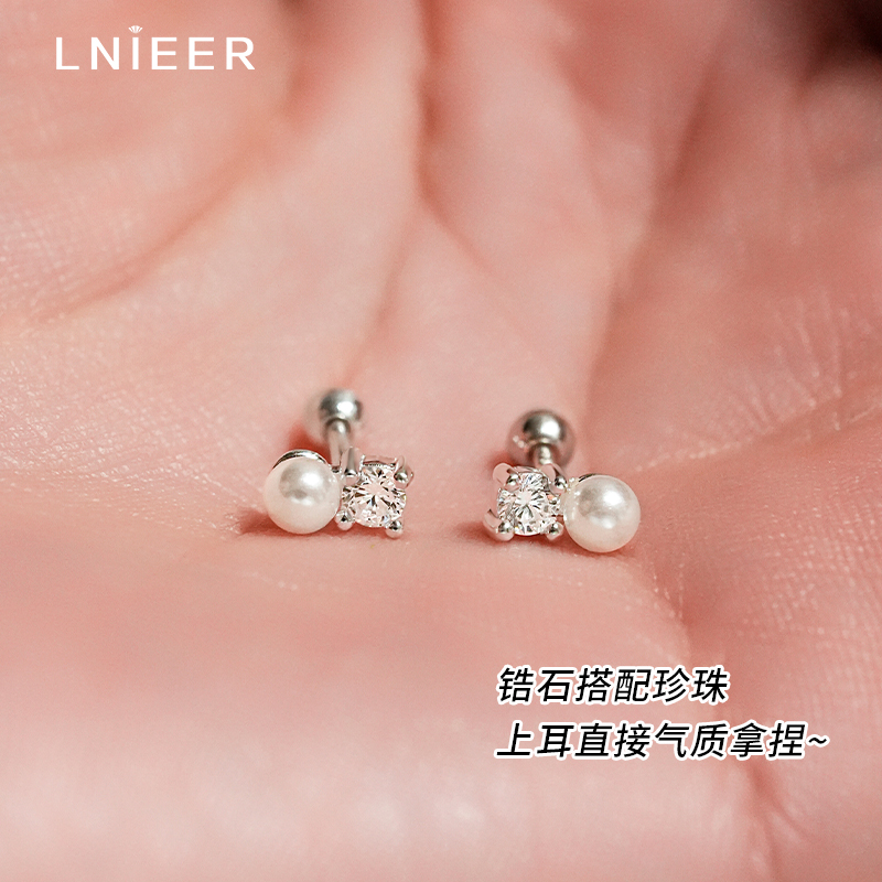 999纯银锆石珍珠耳钉女耳骨钉螺丝扣简约气质2025年新款爆款耳饰