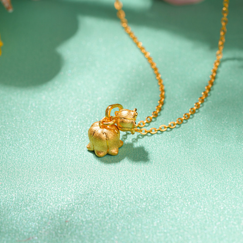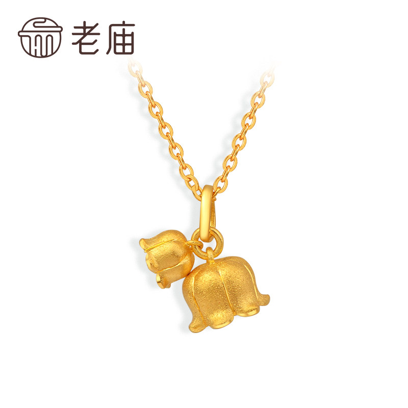 老庙黄金幸福归来并蒂铃兰花足金套链颈小众设计情侣送礼繁花似锦