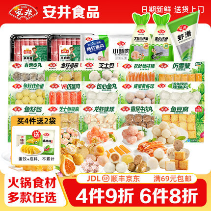 安井【多件多折】任选火锅料丸子虾滑牛肉丸鱼丸鱼豆腐贡丸麻辣烫