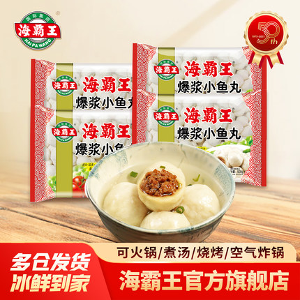 海霸王包心爆浆小鱼丸鱼蛋海鲜丸冷冻火锅食材500g*4包