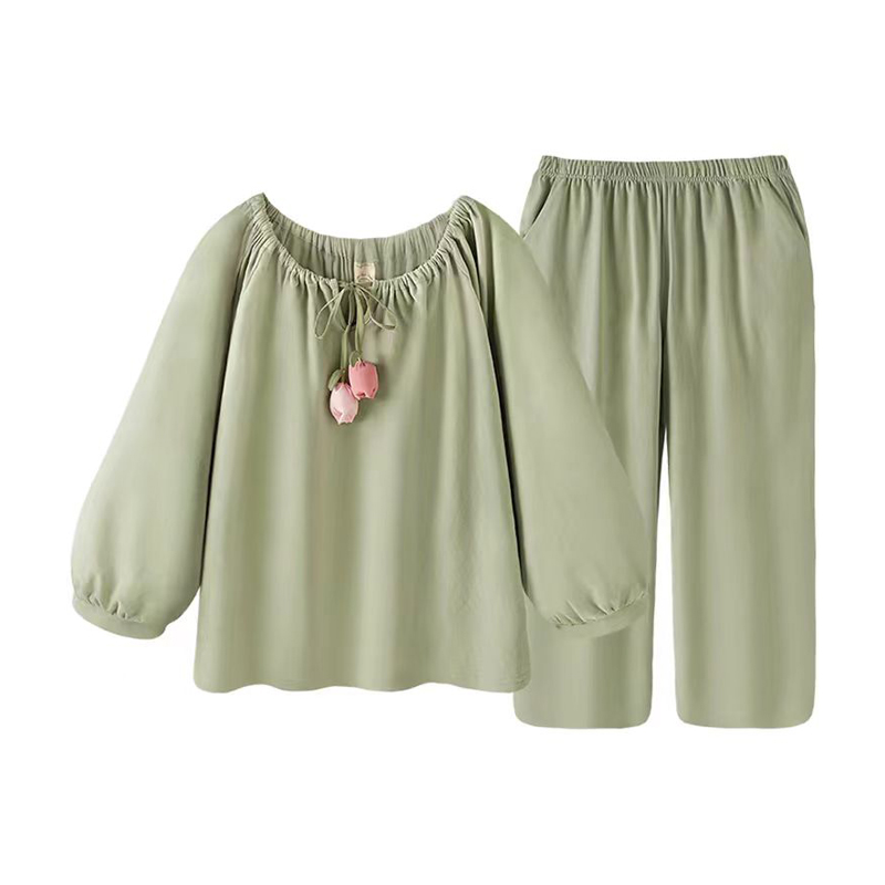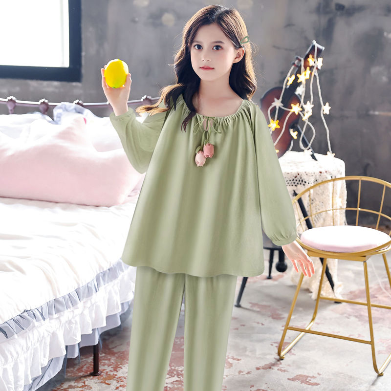 睡衣女童日常休闲新款法式甜美纯棉长袖长裤家居服可外穿春秋套装