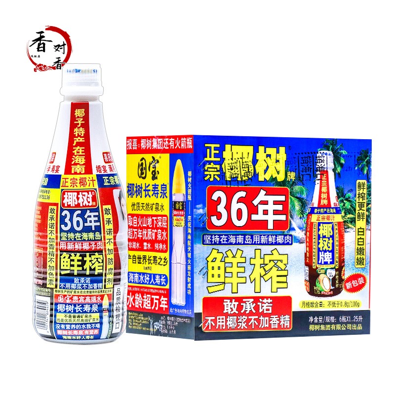 正宗椰树牌椰汁大瓶1.25L*6瓶整箱椰子汁水年货礼盒椰奶果汁饮料