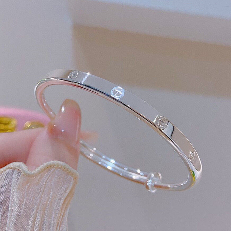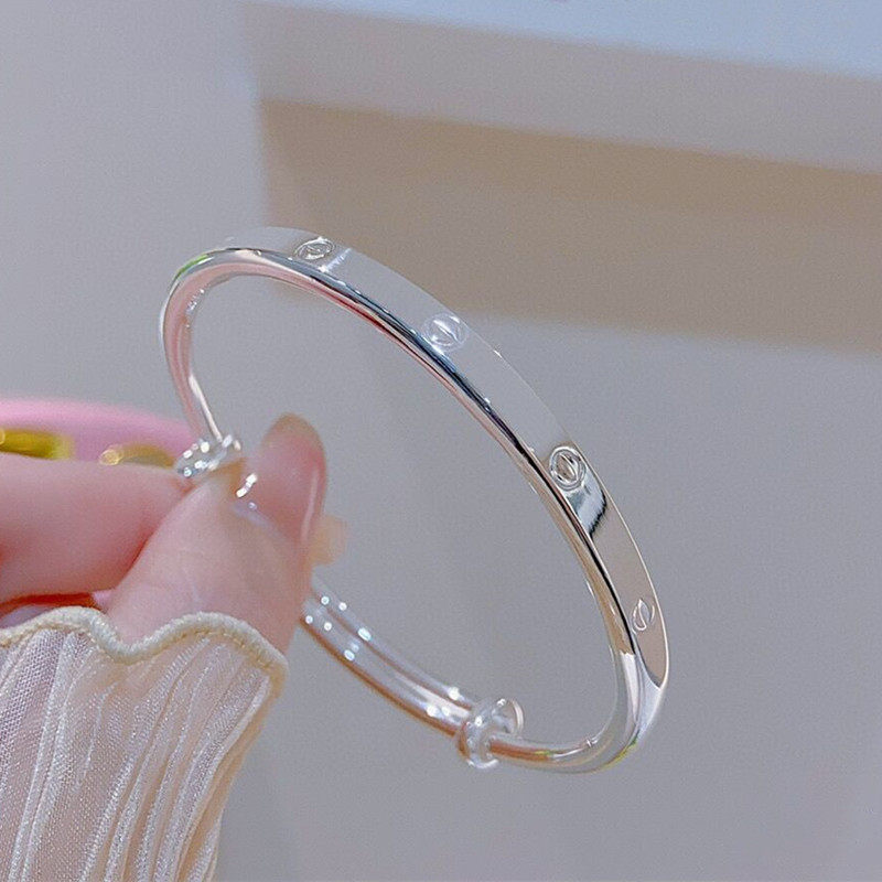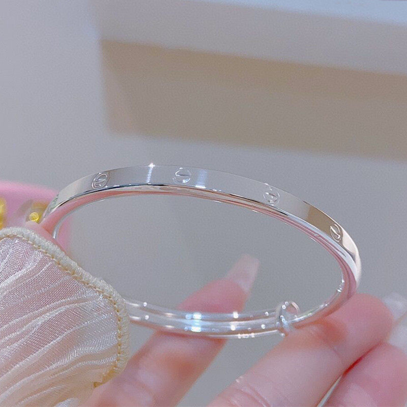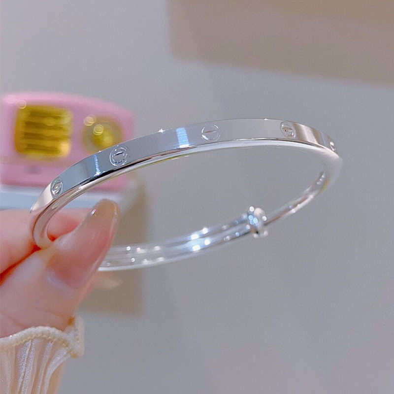 香港正生正品足银9999光面卡卡实心推拉纯银手镯轻奢网红手环情人