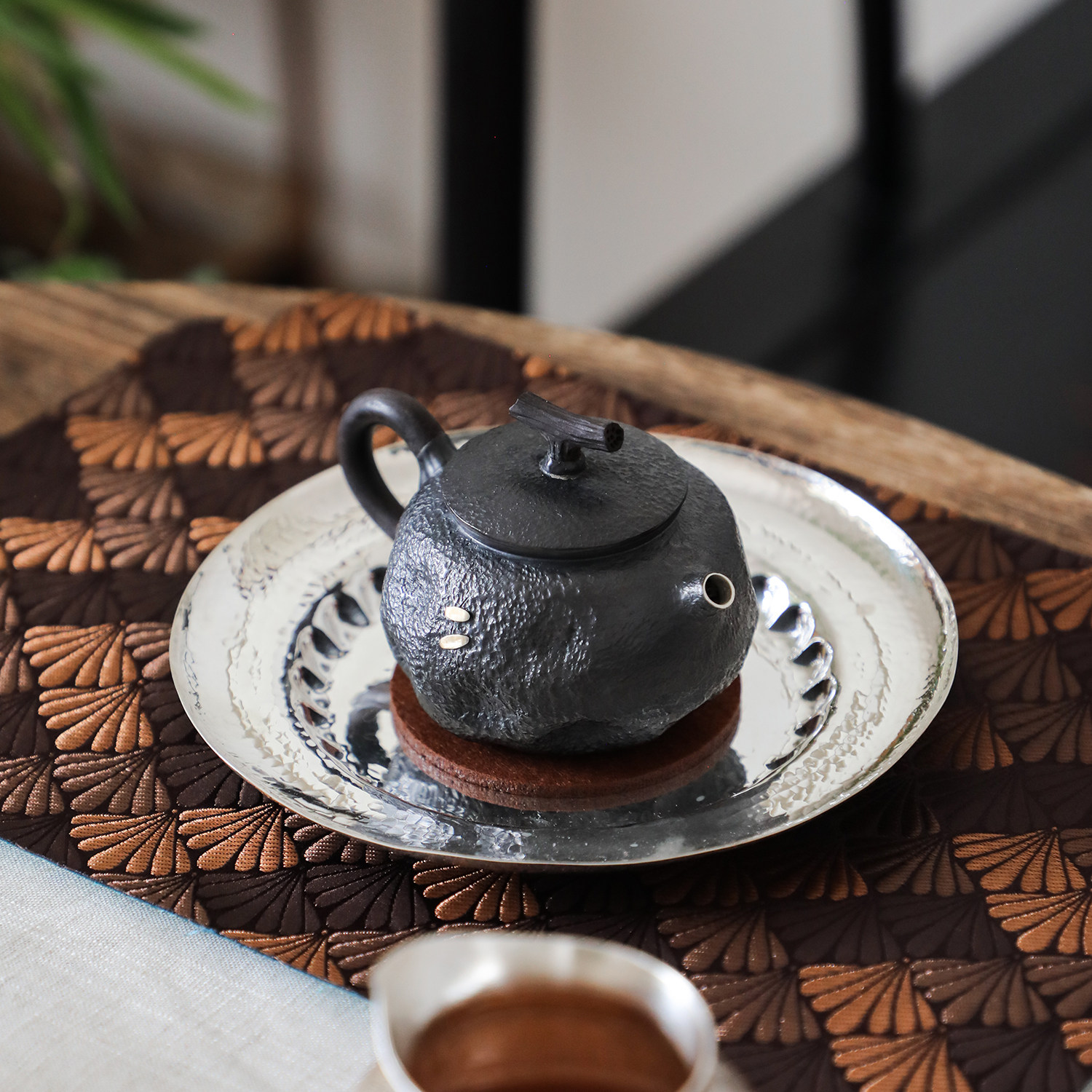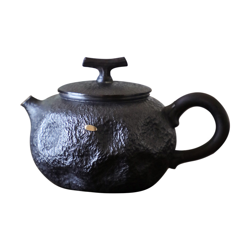 纯银时代 做旧黑色锔钉泡茶壶足银999纯手工银壶朴拙日常小130ml