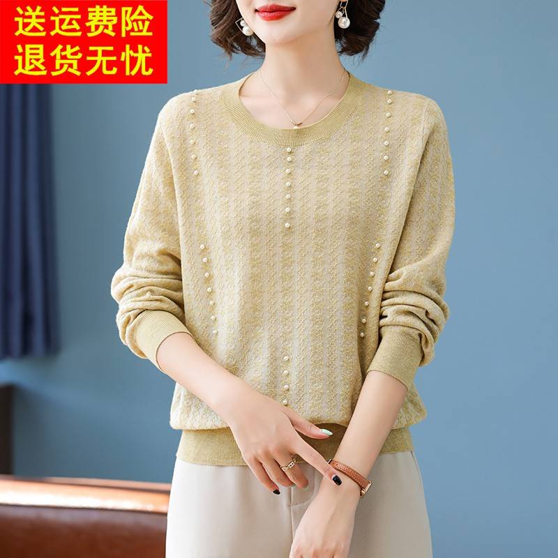 妈妈春秋时尚羊毛打底衫中年女装2025新款毛衣中老年春装针织上衣