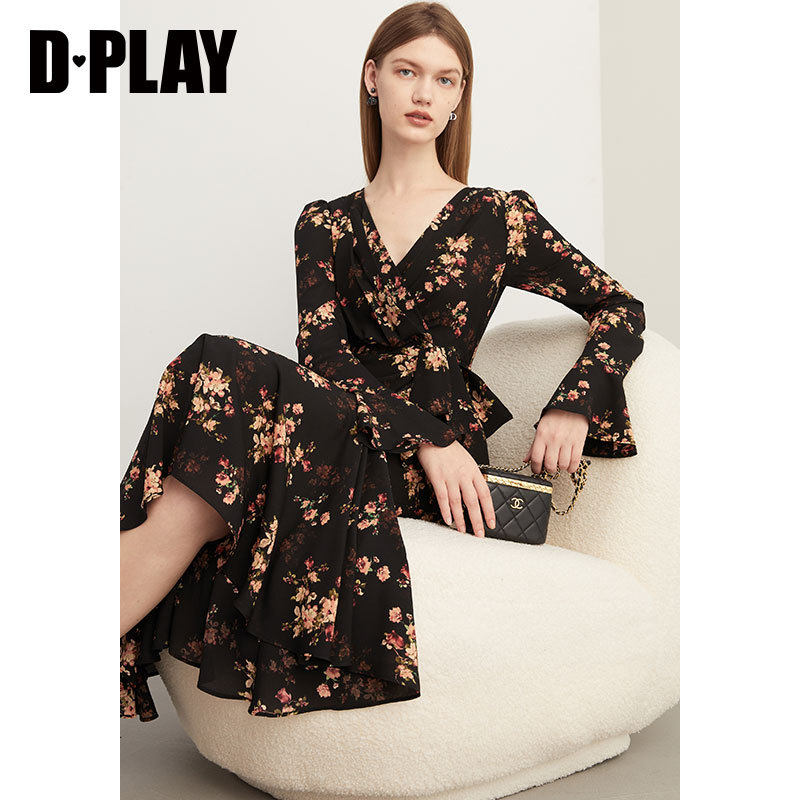 DPLAY茶歇法式连衣裙鱼尾长裙