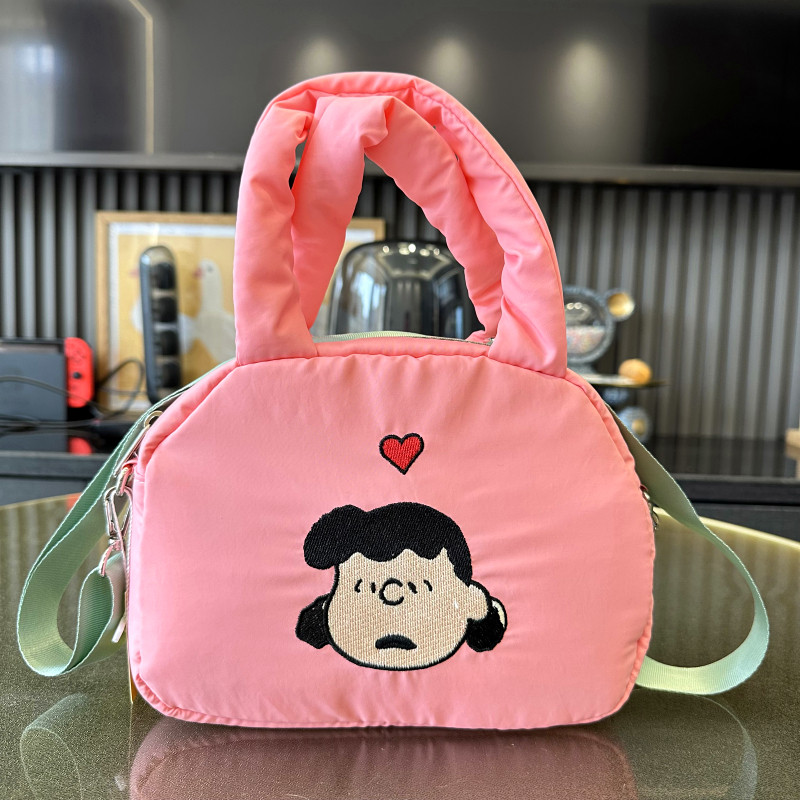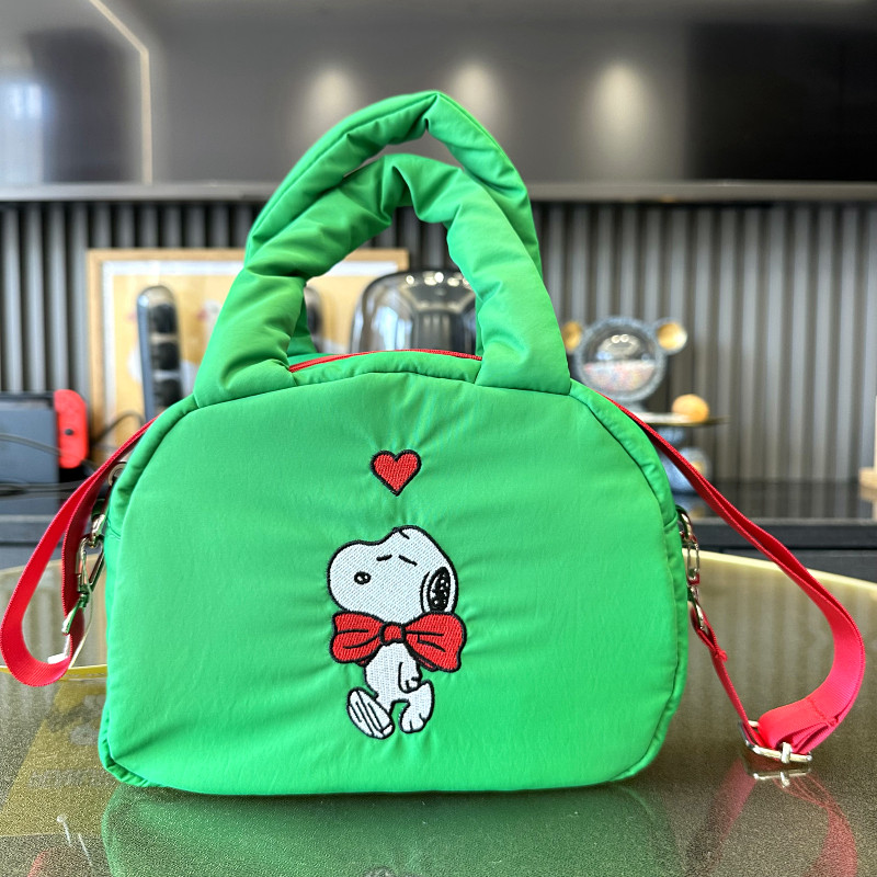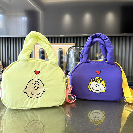 日韩卡通可爱史努比狗狗刺绣单肩手提包休闲百搭收纳小方包羽绒袋