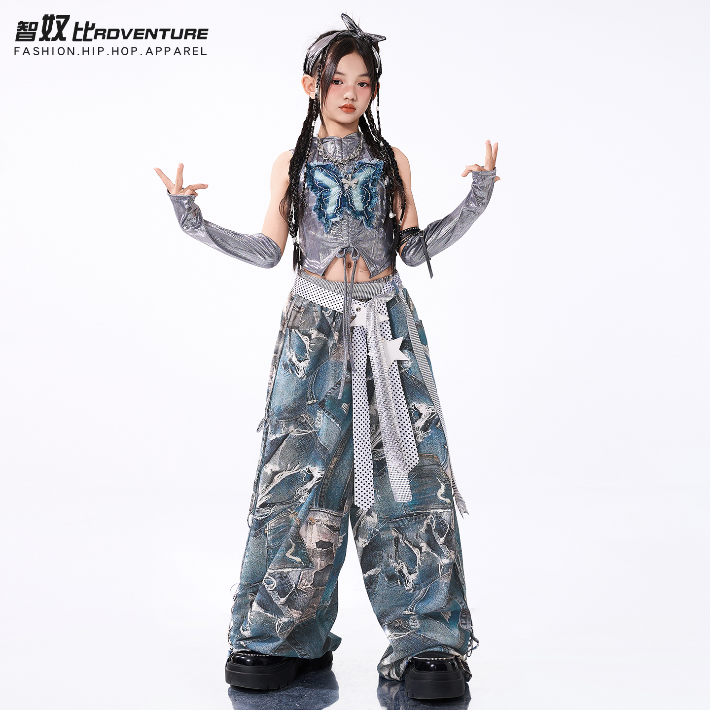 爵士舞女童服装演出服蝴蝶jazz舞蹈服练功服儿童街舞潮服女团套装