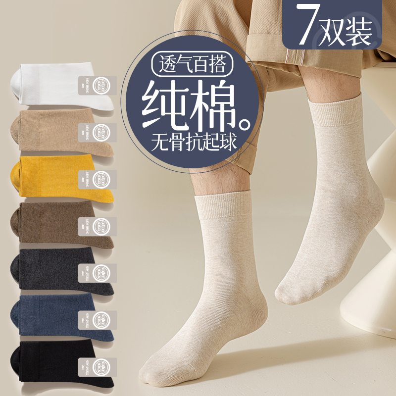 雅鹿袜子男士中筒袜秋冬季纯棉