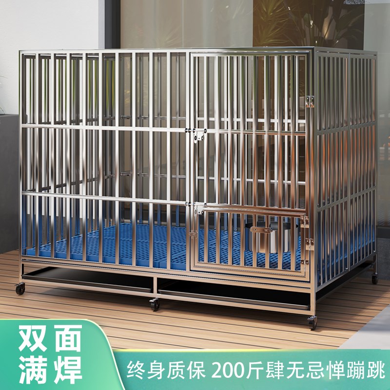 304不锈钢狗笼子大型犬金毛带厕所折叠室内小中型犬狗笼边牧