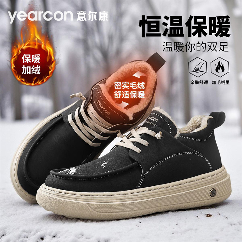 意尔康男鞋冬季加绒棉鞋男士休闲一脚蹬爸爸豆豆鞋防滑防水雪地靴