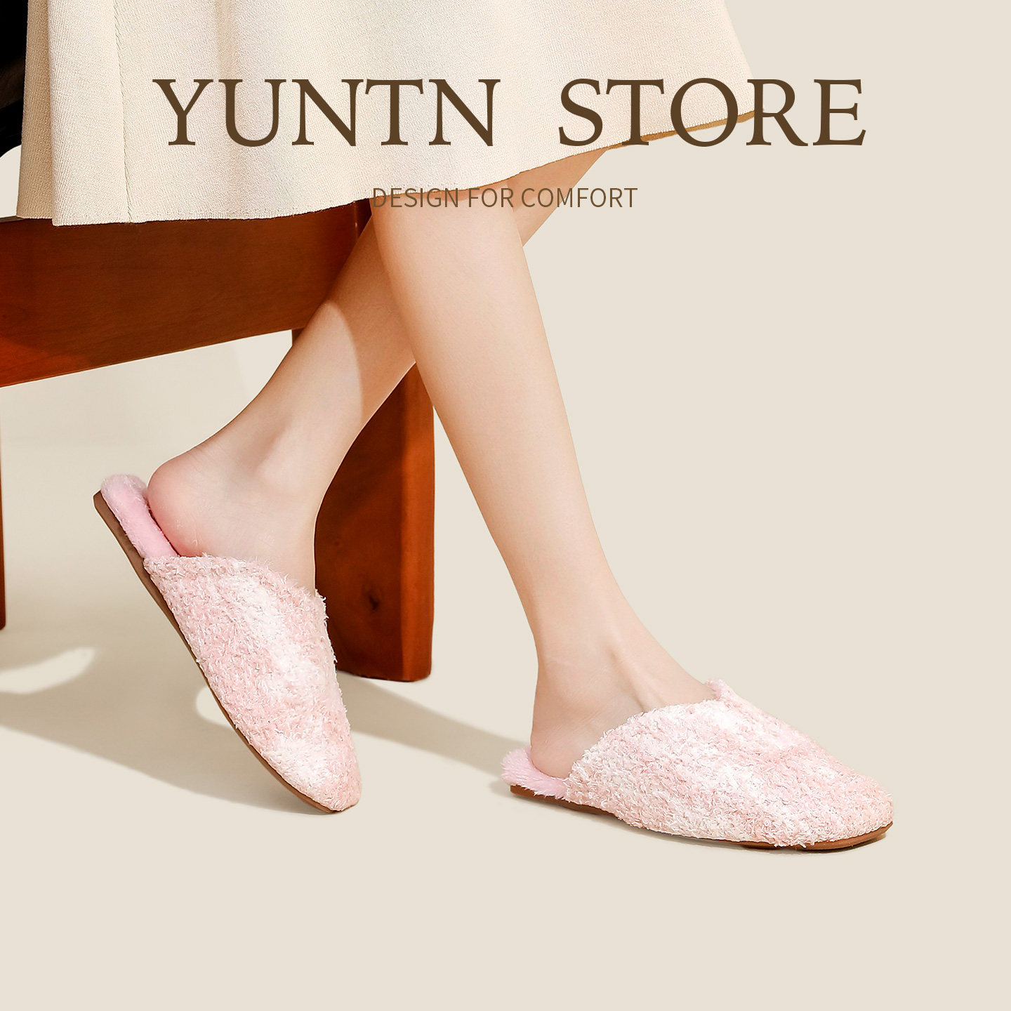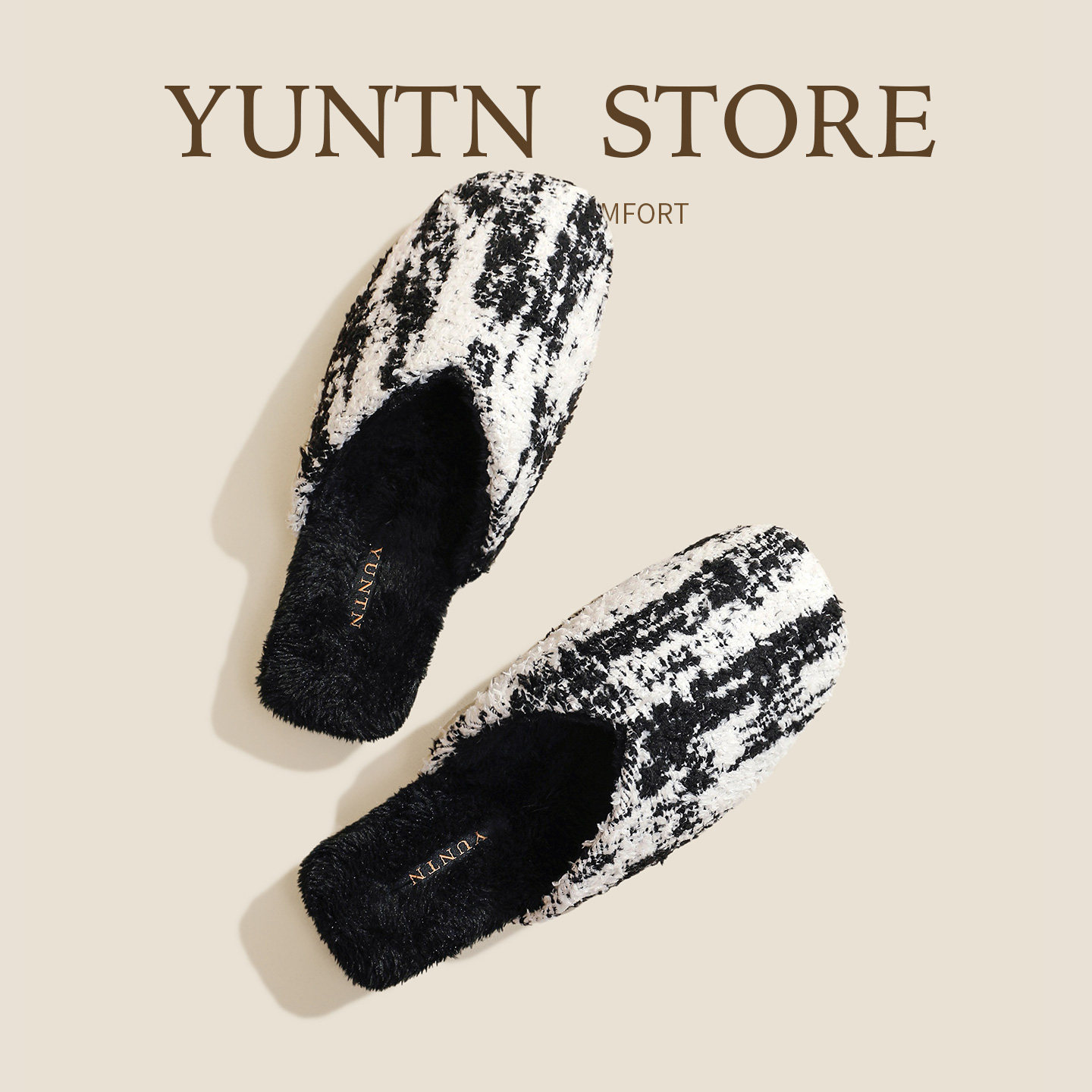 秋冬季轻奢高级复古肌理亲肤绒感加绒保暖棉拖鞋女室内情侣居家拖