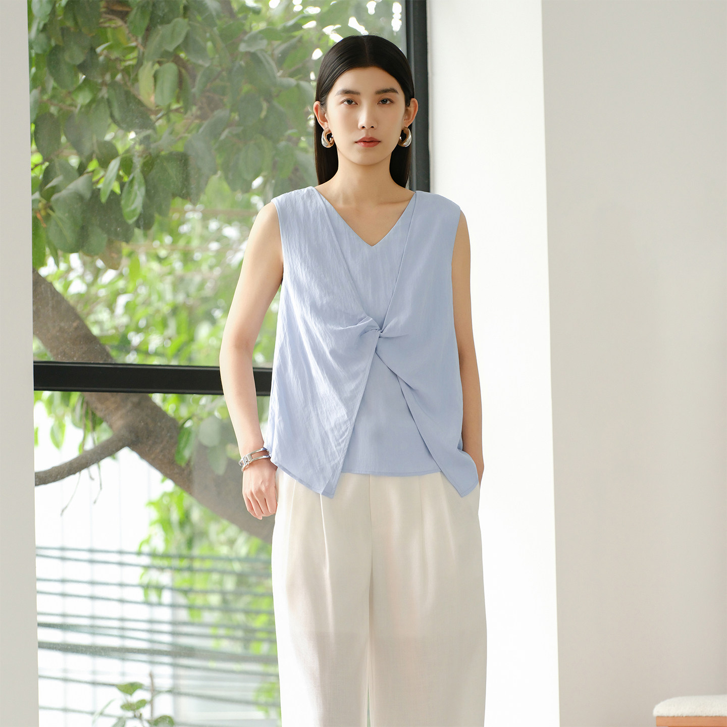 【商场同款】阿依莲时尚设计感无袖衬衫女26夏新款小众背心上衣