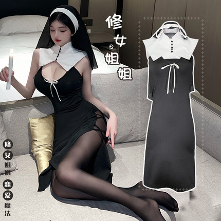姬GILL:【反派修女】开叉纯欲Cosplay女装制服性感连衣裙暗黑套装