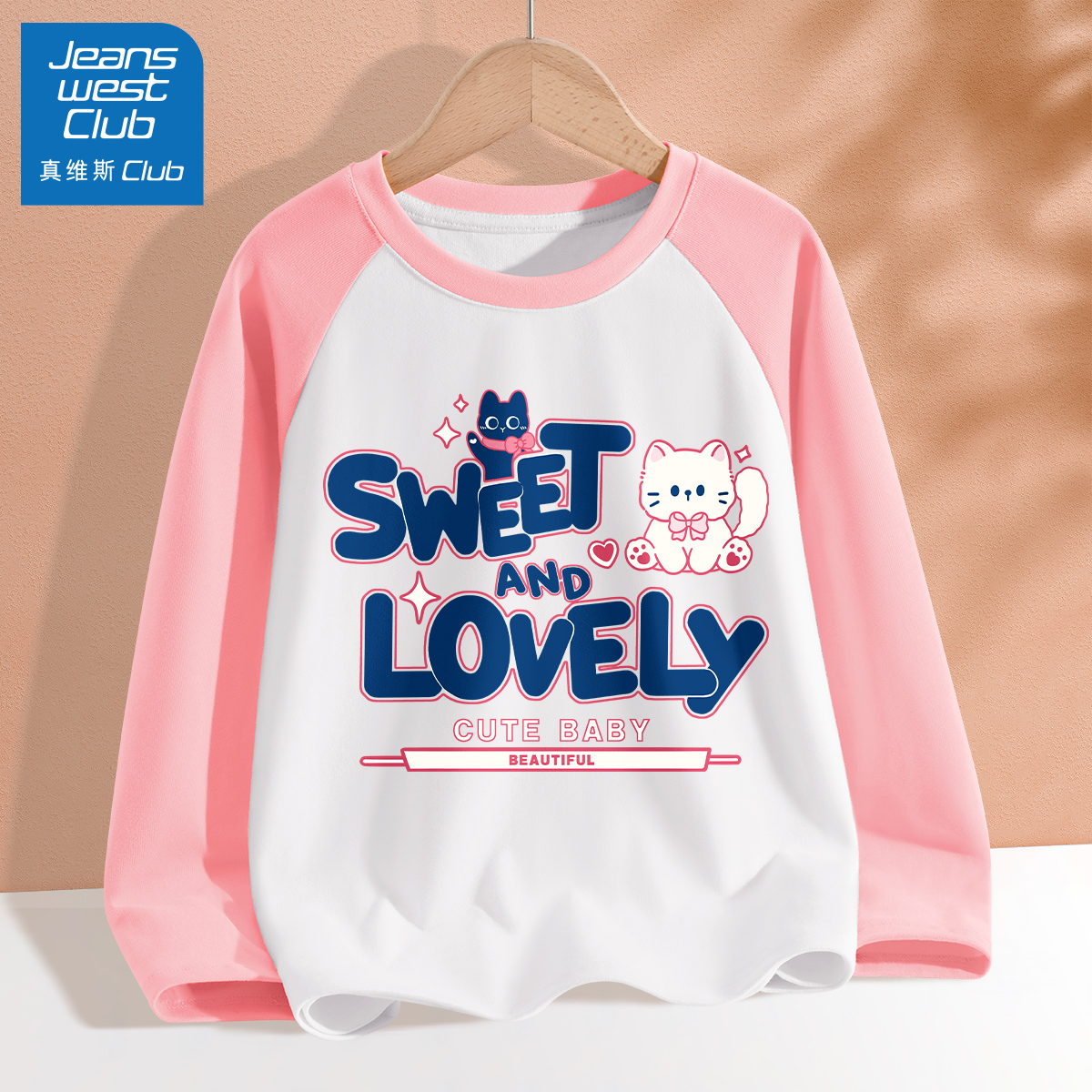 真维斯女童长袖t恤2025新款儿童秋装打底衫纯棉大童装春秋款上衣