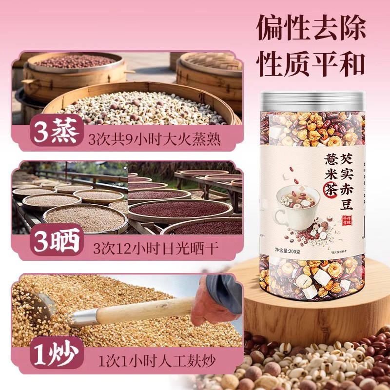 炒熟赤小豆薏米茯苓茶芡实薏米红豆排除湿气茶养生茶泡水煮水喝