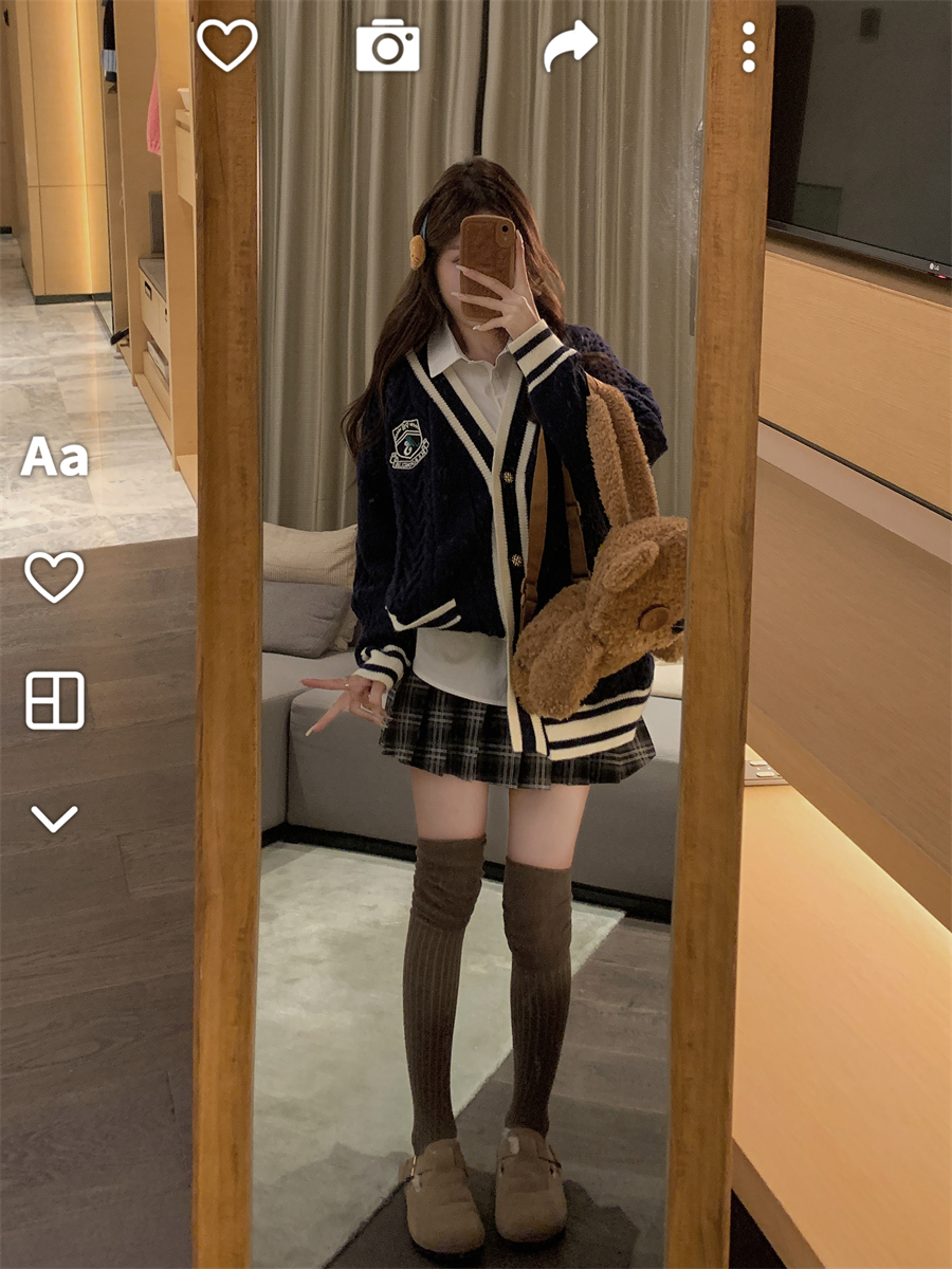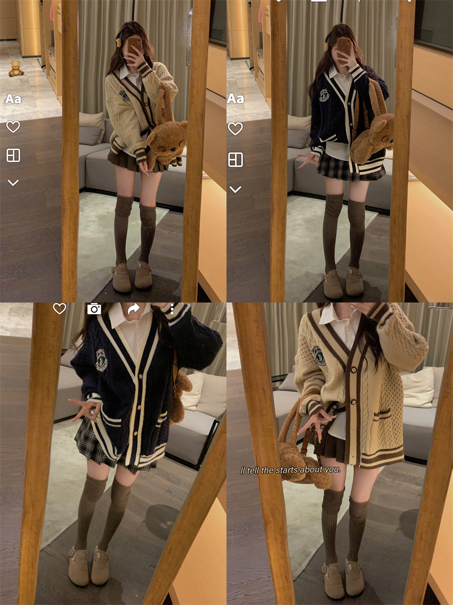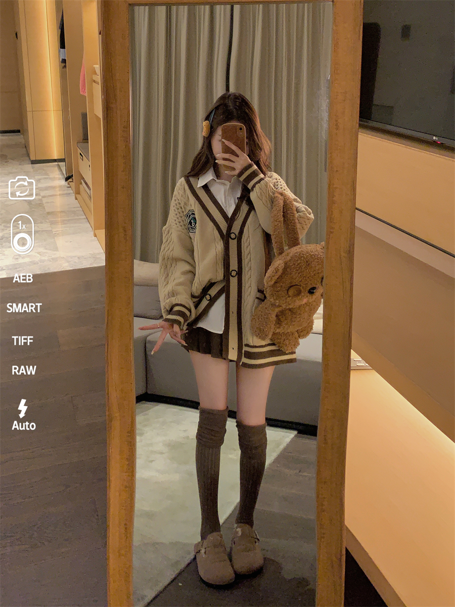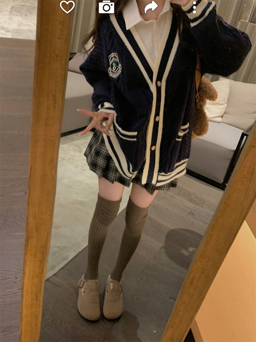 DDXZ夕子 学院风刺绣徽章针织毛衣开衫外套韩系慵懒百搭休闲上衣