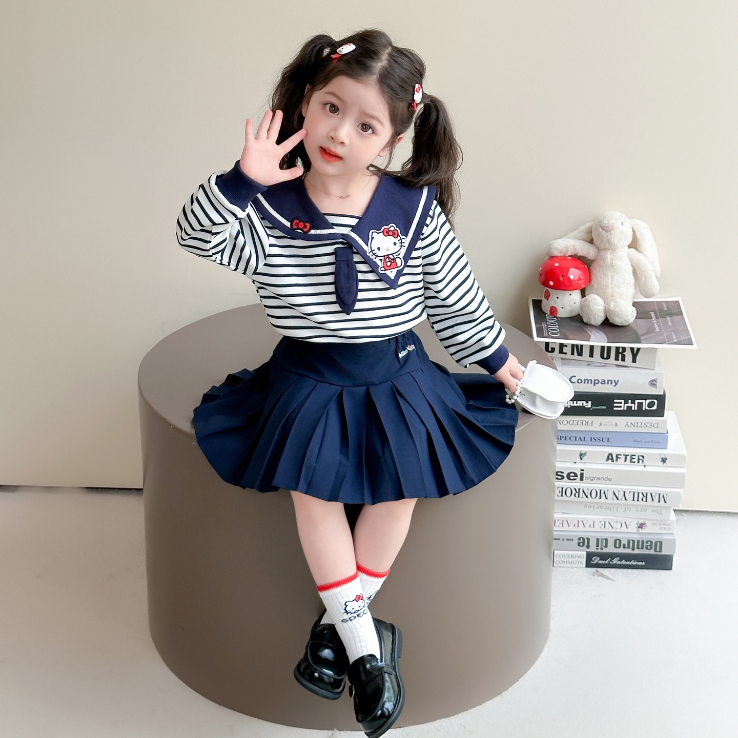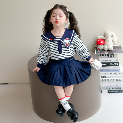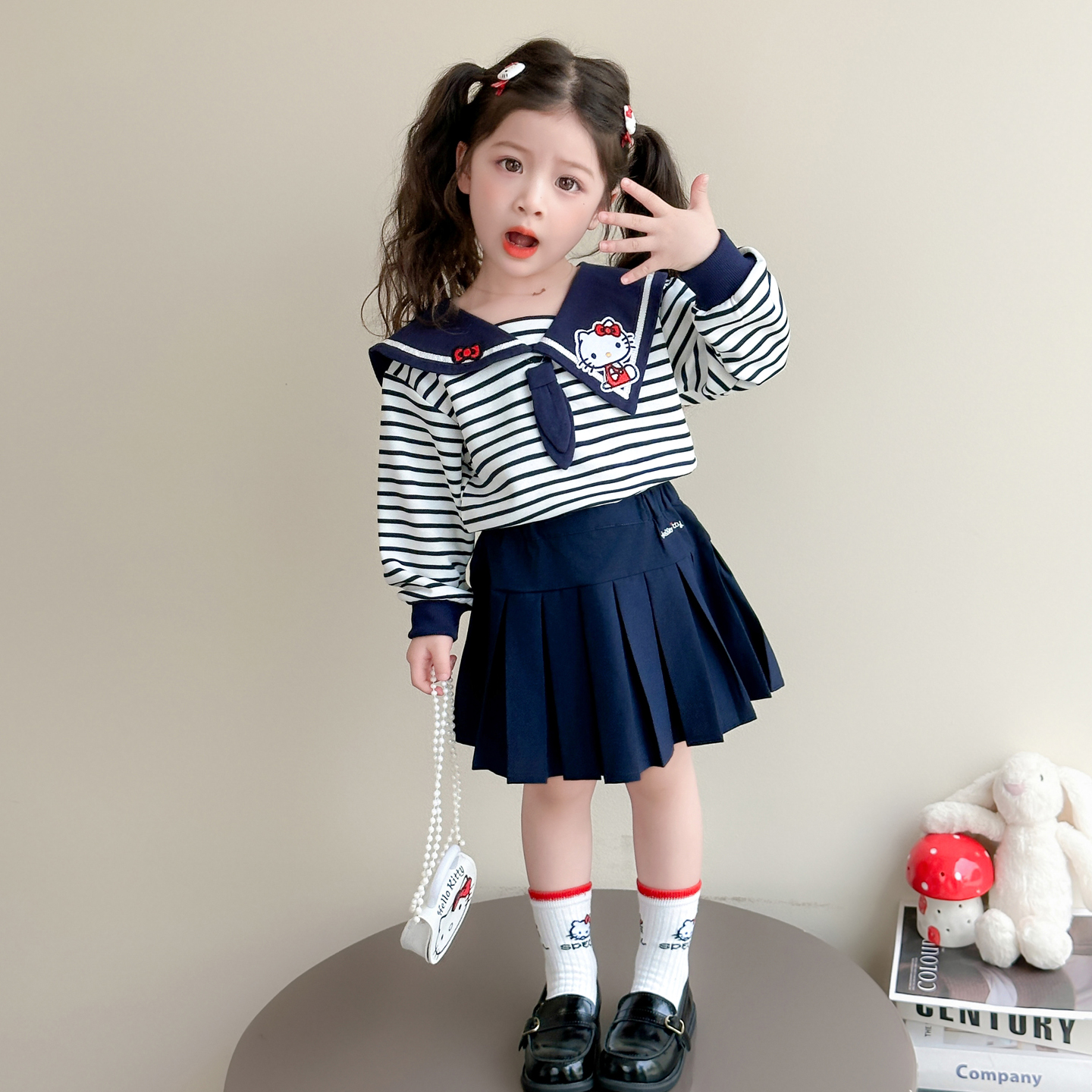 女童套装秋款新款洋气儿童秋装卫衣宝宝学院风卡通kt猫裙子两件套