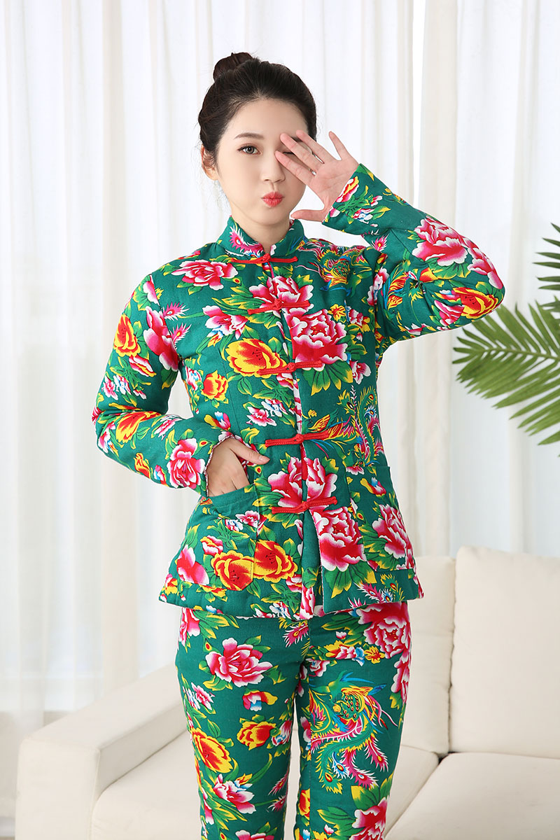 女冬季成人手工棉服立领棉袄东北大花布纯棉花妈妈居家服加厚纯棉