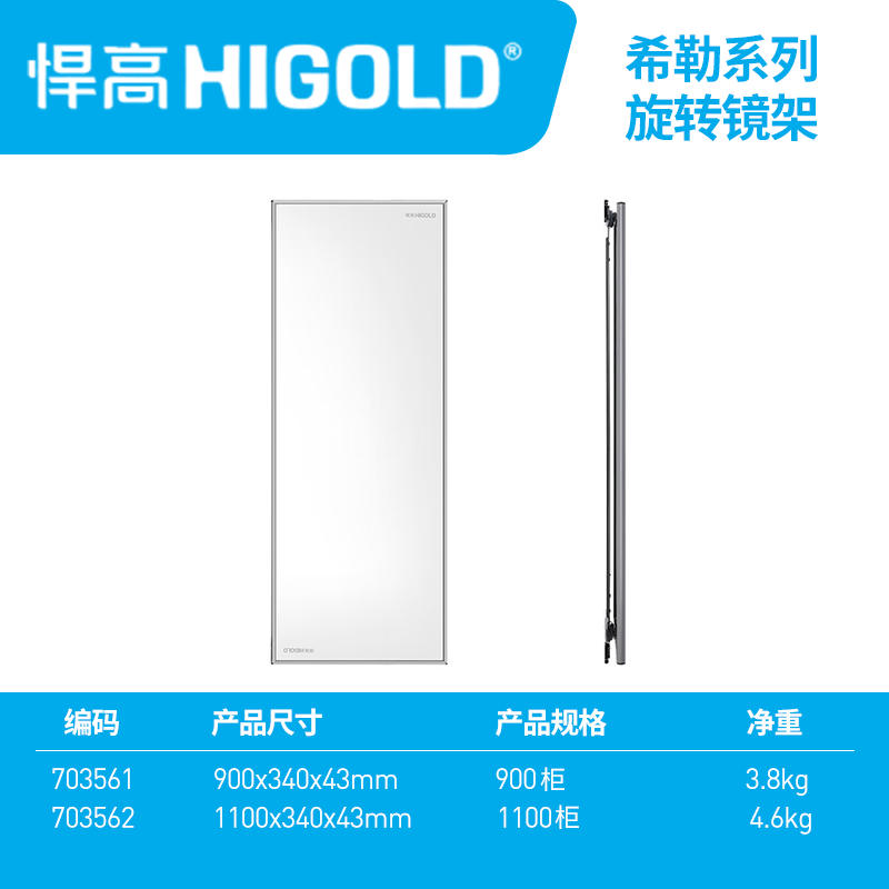 悍高HIGOLD衣柜旋转穿衣镜铝合金可折叠防爆超薄高级旋转穿衣镜
