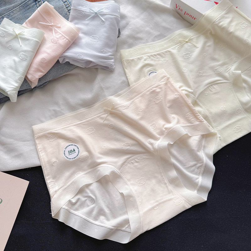 裸肤0感裤!柔软莫代尔感内裤女无痕提花A类全棉加长抑菌裆三角裤