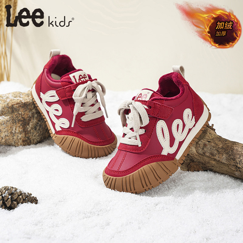 Lee女童运动鞋2025秋冬季新款加绒保暖儿童软底阿甘鞋德训鞋女孩