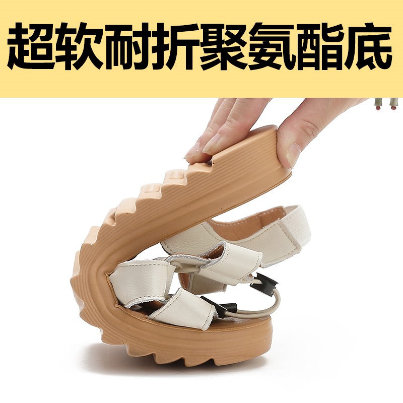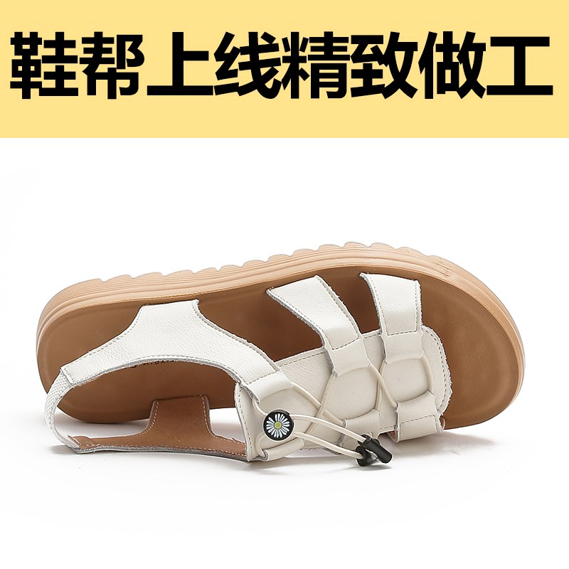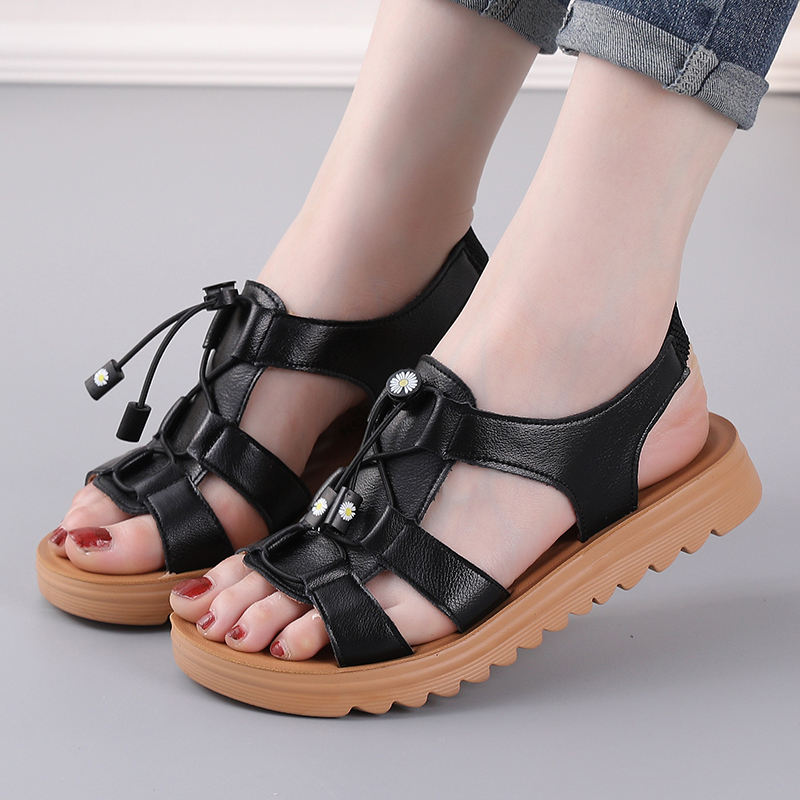 真皮运动凉鞋女夏平底中年孕妇女士舒适软底防滑中老年人妈妈凉鞋