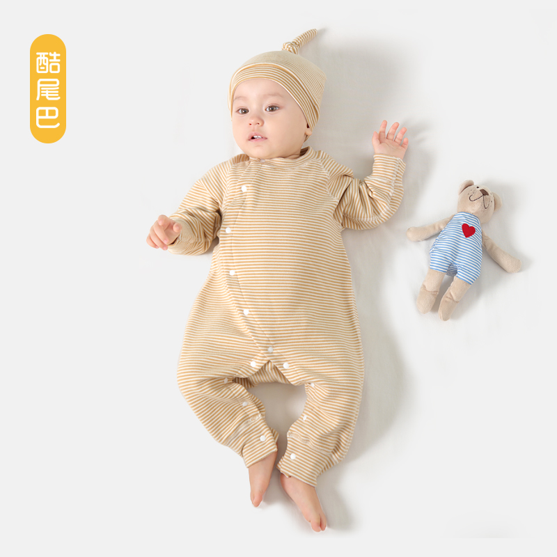 酷尾巴婴儿内衣德绒保暖衣服春秋季按扣开裆高腰裤子男女分体套装