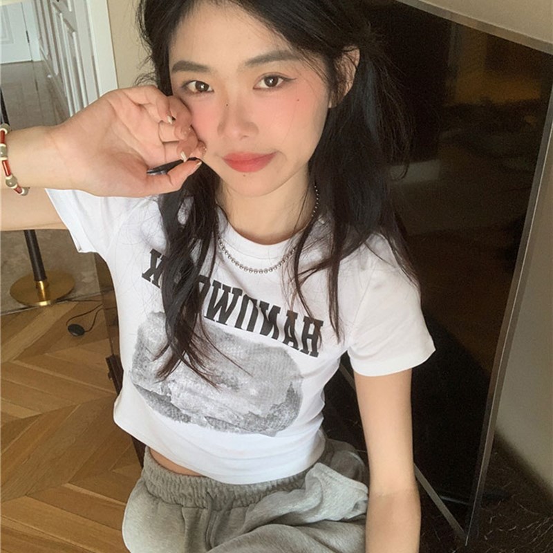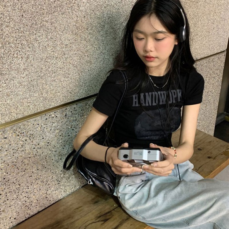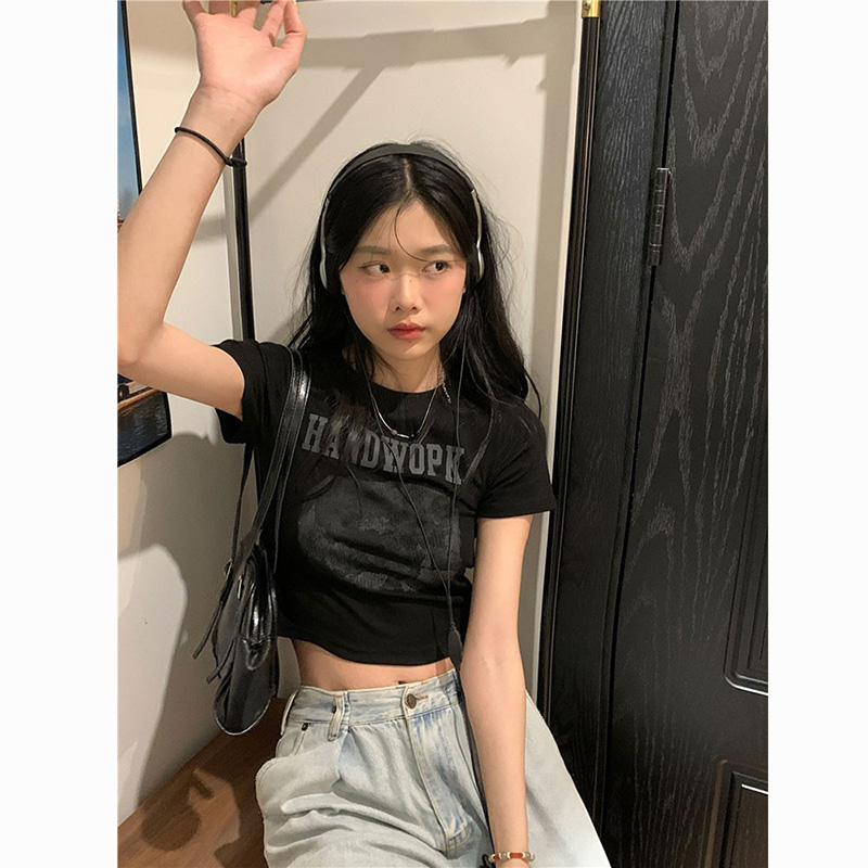 速发美式黑色辣妹正肩T恤夏纯欲高腰露脐短款上衣