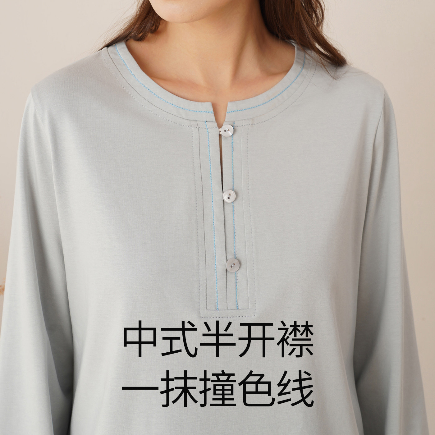 淳度女士睡衣新款春款莫代尔棉长袖套头套装大码蓝中式休闲宽松
