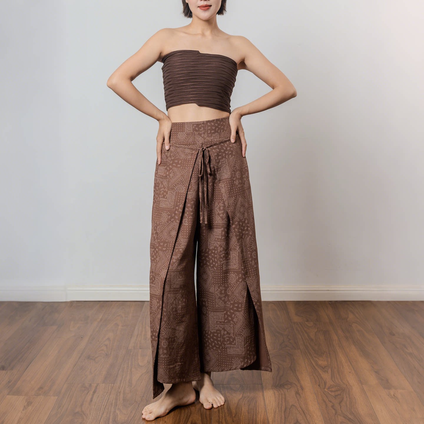 AddOne+1禅意疗愈瑜伽内观流高腰阔腿裤波西米亚风宽松瑜伽裤9分