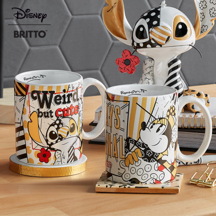 enesco迪士尼史迪奇水杯星际宝贝黑金史迪仔米奇卡通陶瓷马克杯