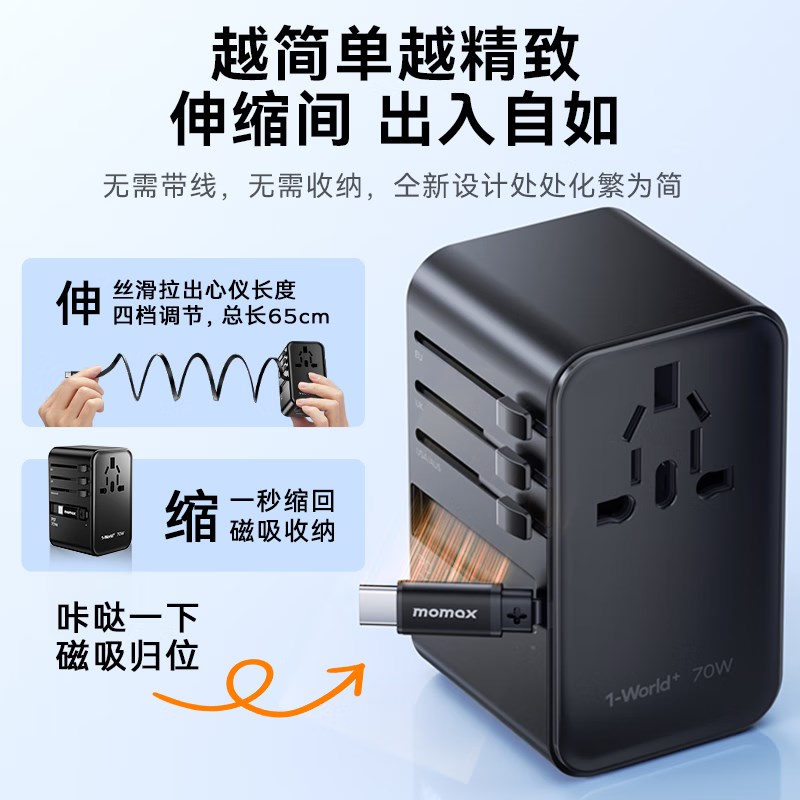 摩米士转换插头全球通用氮化镓自带线出国旅行插座充电器英标欧标