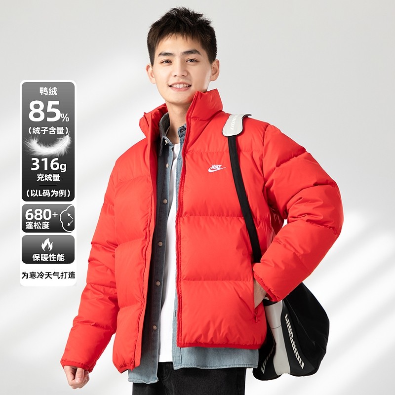 NIKE耐克运动套装男装本命年红色加厚面包服裤子男冬季羽绒服外套